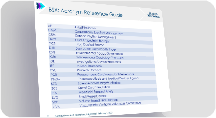 BSX: Acronym Reference Guide AF Atrial Fibrillation CMM Conventional Medical Management CRM Cardiac Rhythm Management DAPT Dual Antiplatelet Therapy DCB Drug Coated Balloon DJSI Dow Jones Sustainability Index ESG Environmental, Social, Governance ICTx Interventional Cardiology Therapies IDE Investigational Device Exemption ISR In-Stent Restenosis PVL Paravalvular Leak PCR Percutaneous Cardiovascular Interventions PMDA Pharmaceuticals and Medical Devices Agency SBTi Science-based Targets Initiative SCS Spinal Cord Stimulation SFA Superficial Femoral Artery SVD Small Vessel Disease VBP Volume-based Procurement VIVA Vascular InterVentional Advances Conference 32 Q4 2022 Financial & Operational Highlights | February 1, 2023